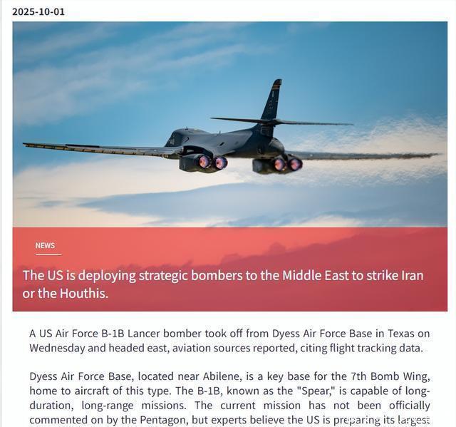 美军战略重心全面东移 2025年10月1日,B-1B“枪骑兵”轰炸机从美国本土德克萨斯州戴伊斯基地突发起飞,飞行轨迹直指中东。仅两天,美军KC-46A、KC-135加油机和F-22、F-35等主力战机,密集部署卡塔尔等战略基地。美国“杰拉尔德·R·福特”号航母,原本驻扎北欧,紧急调头,直奔红海。 这一系列快速调动,背后是白宫与五角大楼的高度警觉。根据美军中央司令部最新通报,过去两周内,美军中东力量增长幅度高达40%。英国《简氏防务周刊》披露,2025年9月美军在中东新增部署的战略空中力量,为近五年来首次超越“12天战争”期间的高点。
